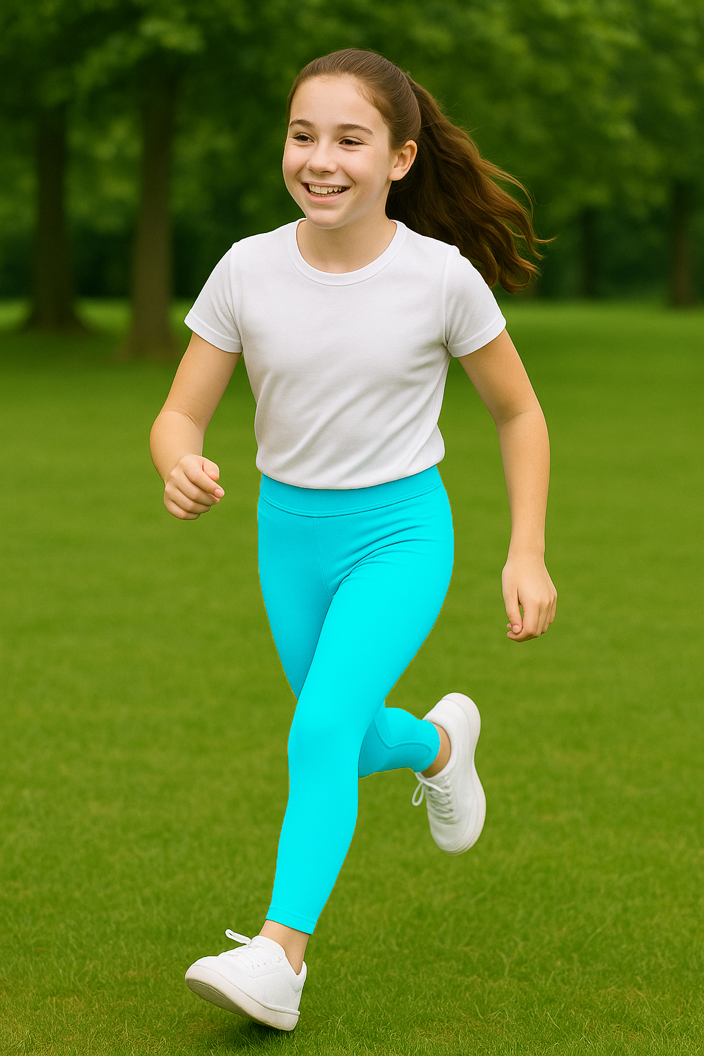 Designed for active girls who love bold colour and comfort, the vibrant aqua blue hue adds a splash of freshness to her wardrobe. The wide, narrow elasticated waistband offers a secure hold without digging in, while the wrinkle-free fabric keeps her looking neat and put-together no matter the activity.
