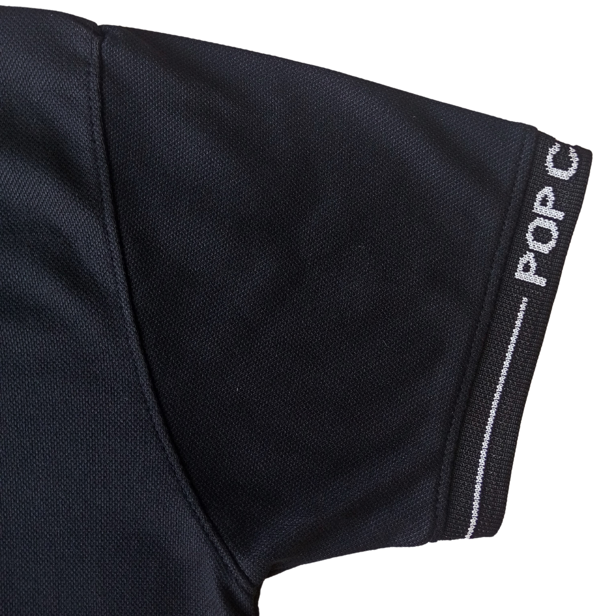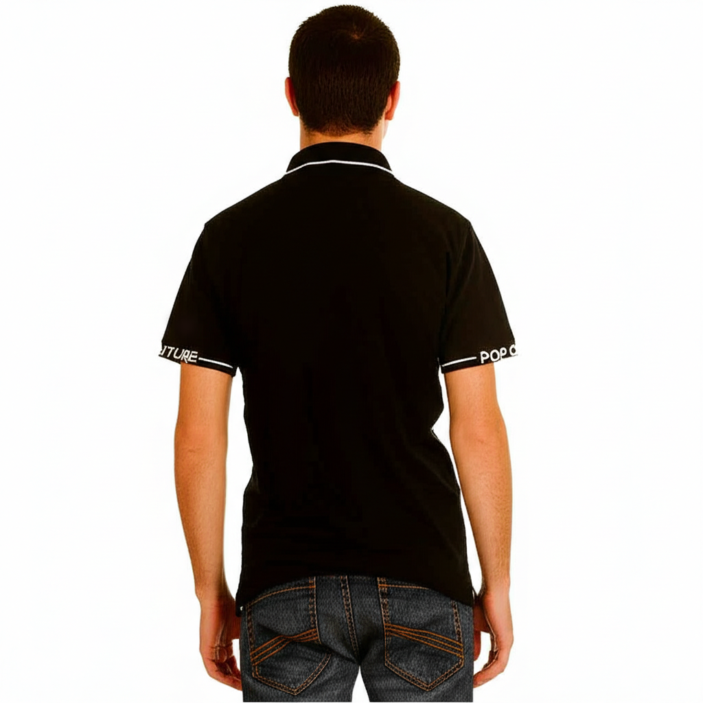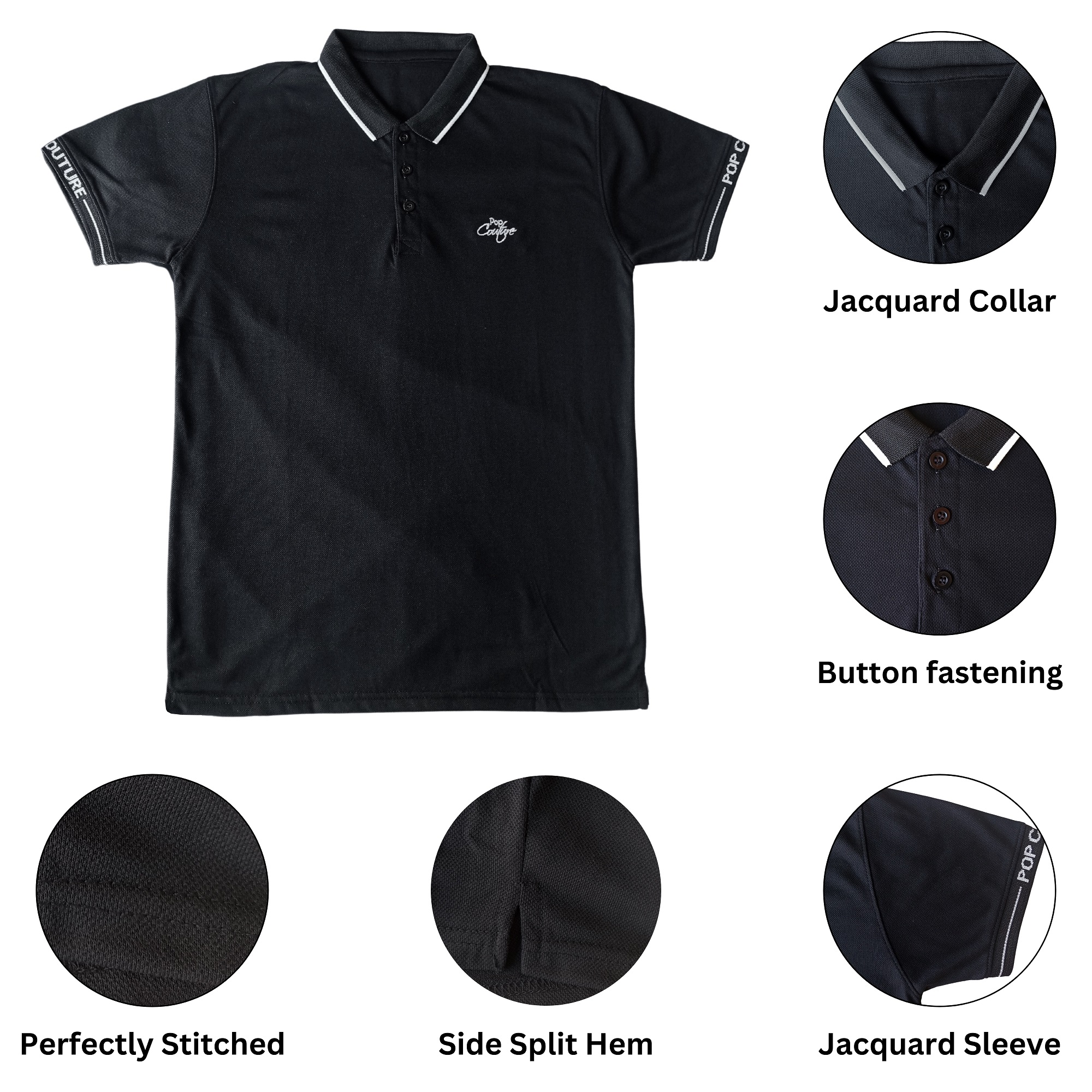 Men’s Black Single Stripe Casual Polo Shirt with Jacquard Collar – Short Sleeves