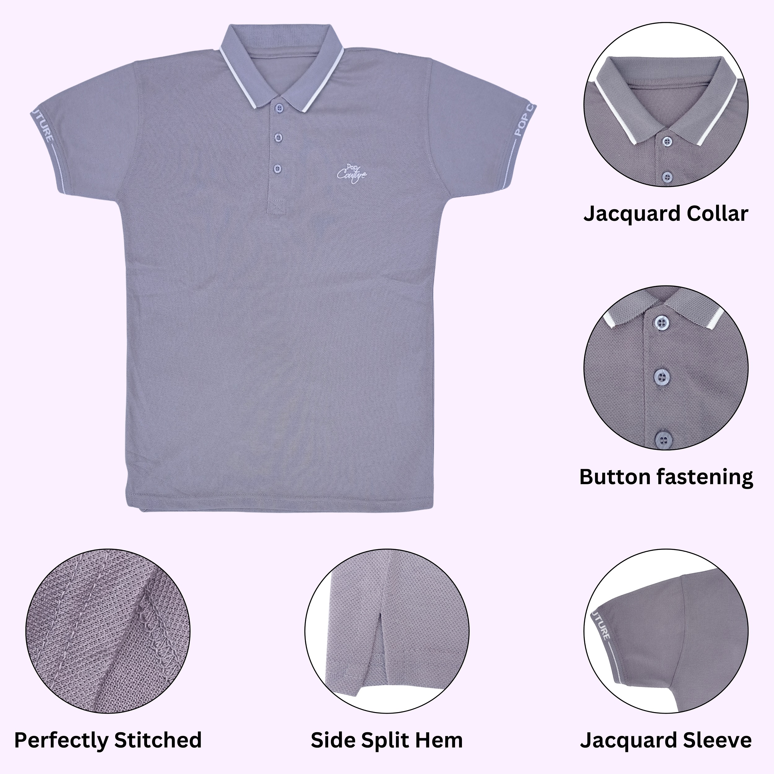 - Stylish Jacquard Collar: Unique textured collar adds a refined edge to the classic polo shirt look.