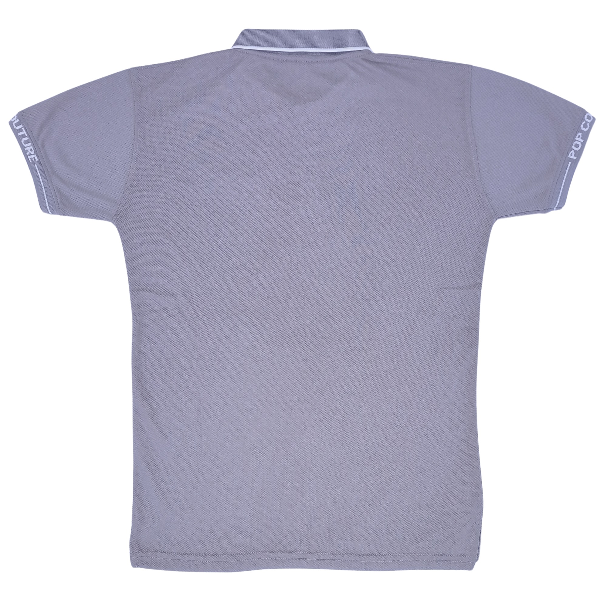 Men’s Grey Single Stripe Casual Polo Shirt with Jacquard Collar – Short Sleeves