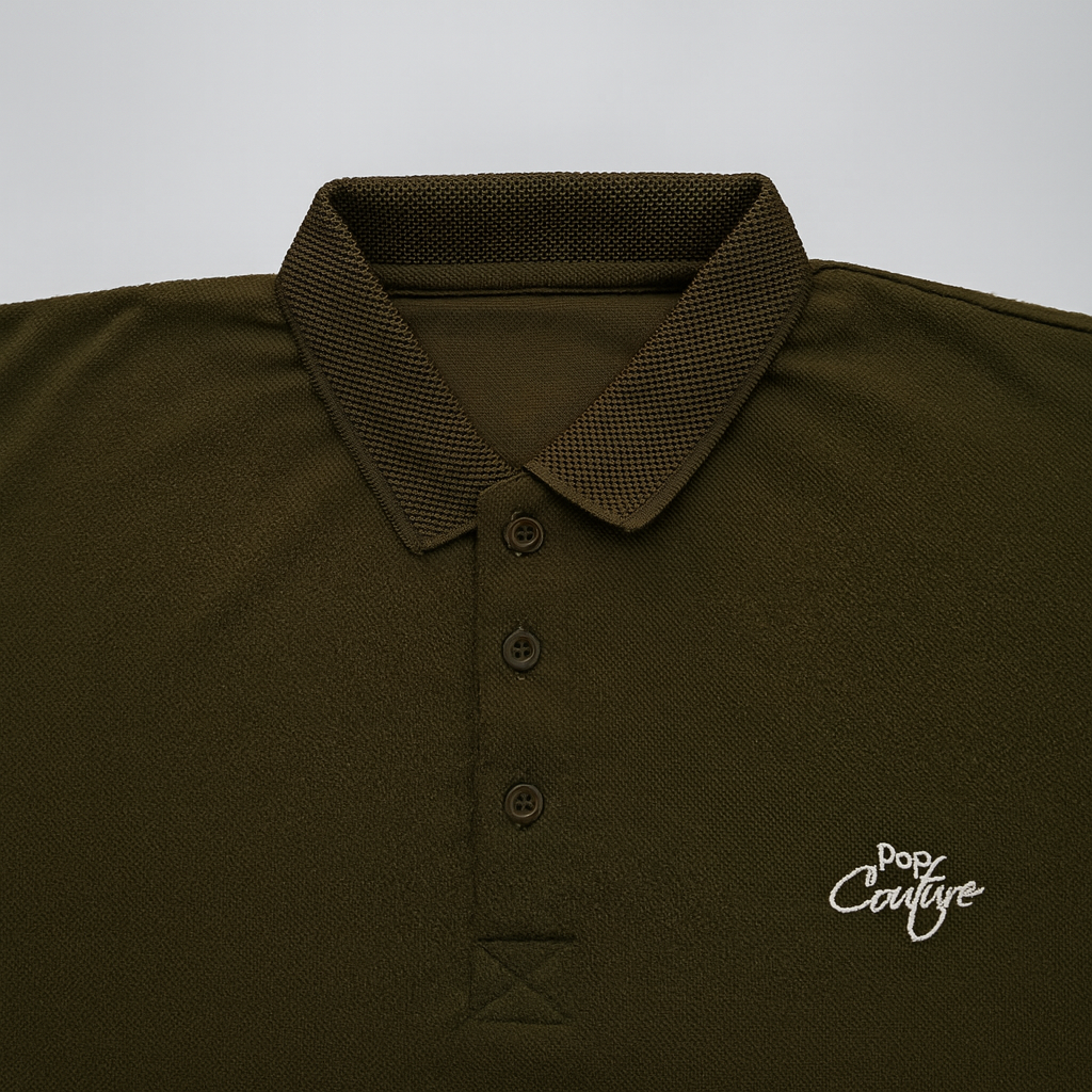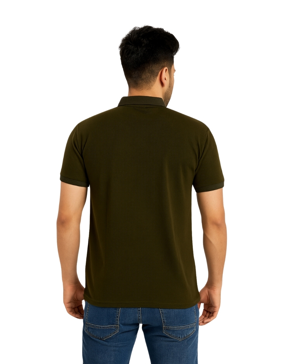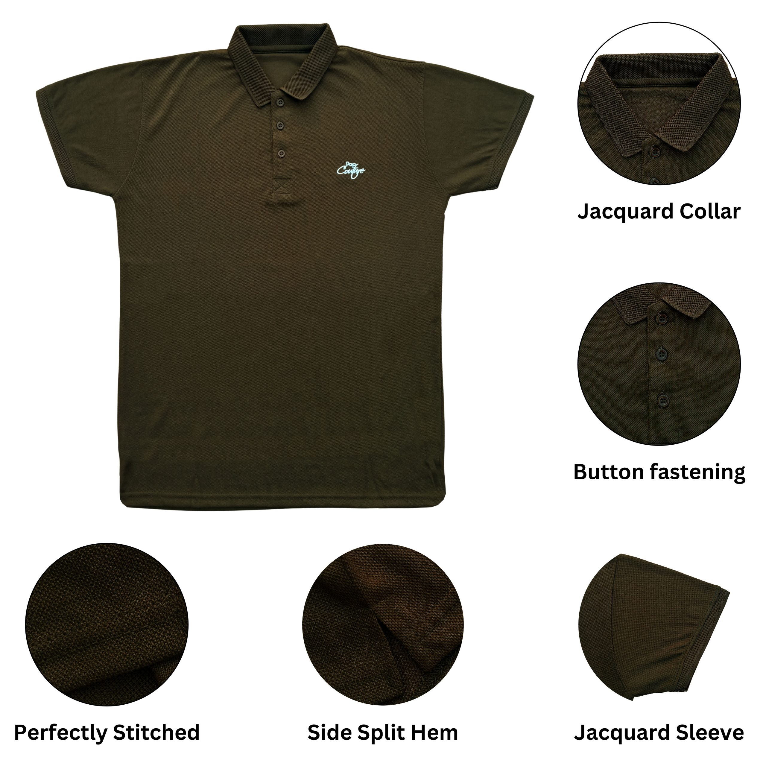 Men’s Khaki Casual Polo Shirt with Jacquard Collar – Short Sleeves