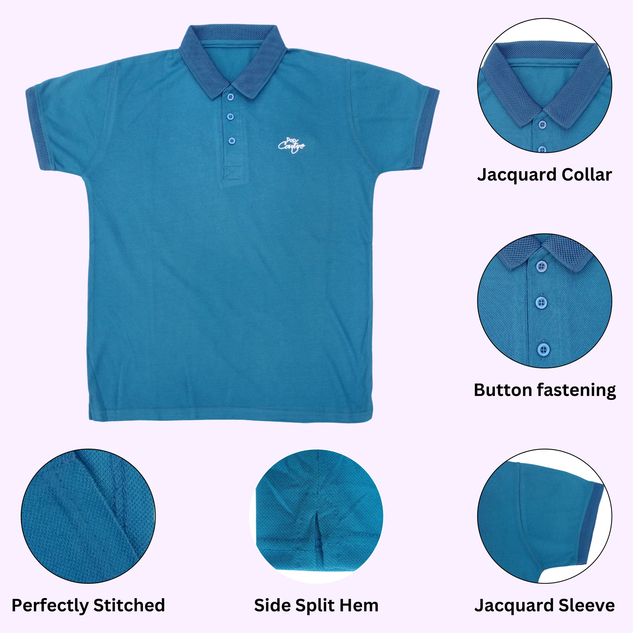 Elevate your everyday wardrobe with our Men’s Casual Plain Jacquard Collar Polo Shirt – where comfort meets timeless style. Made from a premium blend of high-quality Pakistani cotton and durable polyester, this shirt offers exceptional softness, breathability, and long-lasting wear, making it a perfect choice for every season.
