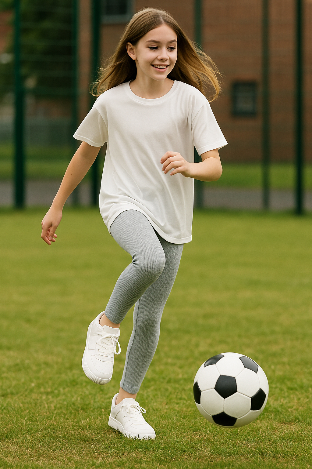 The snug, elasticated waistband provides a secure and comfortable fit without digging in, making them ideal for all-day wear. These leggings maintain their shape after every wash, ensuring long-lasting durability and value. Available in versatile neutral shades and sizes 20–36, they pair perfectly with t-shirts, hoodies, or casual tops—making them a must-have in every girl’s wardrobe.